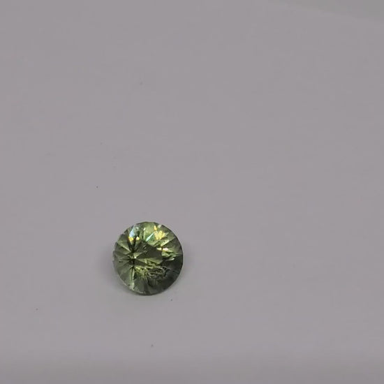 Any tourmaline lovers out there? This little 1ct green tourmaline would look great in your next project. Perfectly sized for a ring. This 6mm natural green tourmaline will really wow them. It is cut in Arya's Jaws of Darkness design that really throws off the glitter. Actually cut this stone down the C axis for a little better size and a very interesting green. Have fun with it.