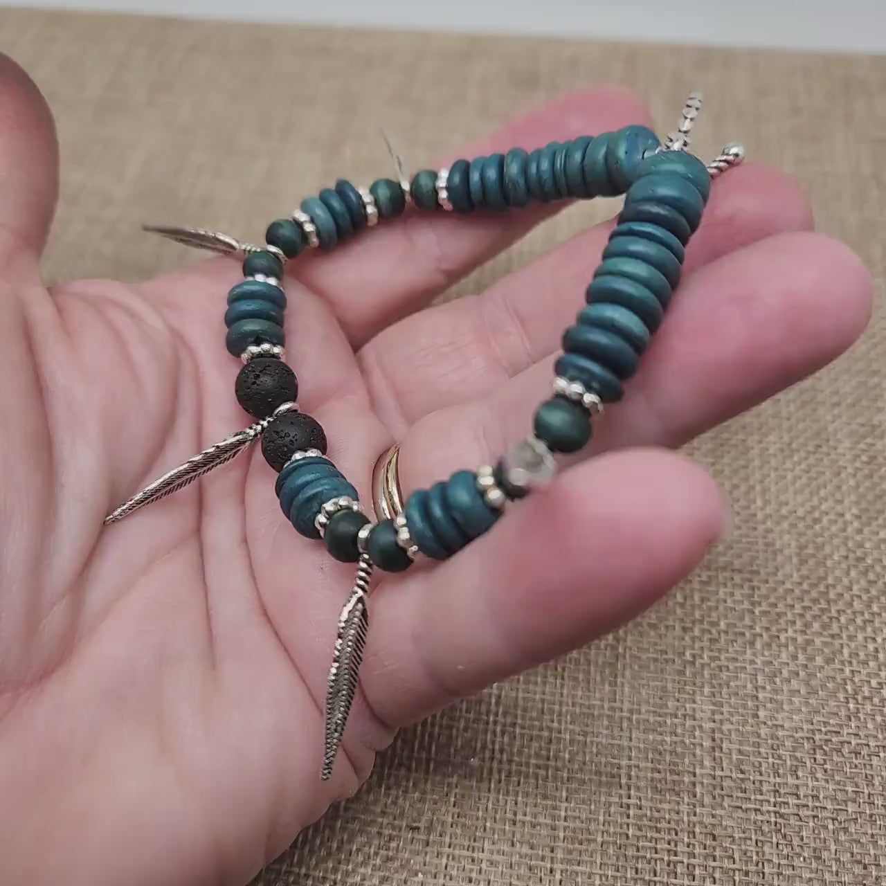 Hand Beaded Blue Feather Infusion Bracelet for Perfume or Essential Oils