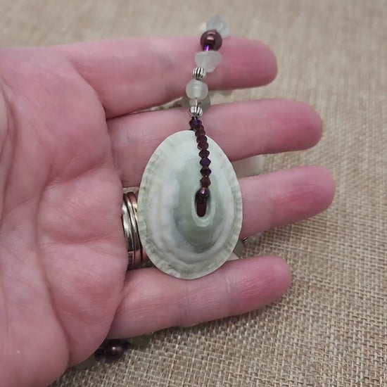 Hand Beaded Seashell Jade Phrenite and Howlite Necklace