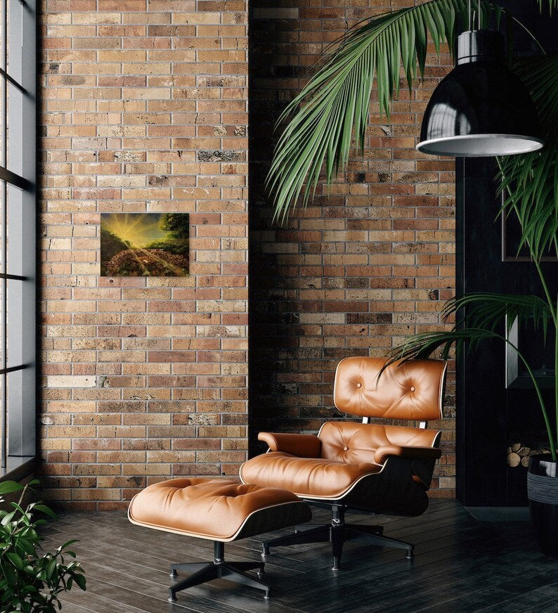 You can just picture the fairies and pixies warring over this gorgeous location. The sunbeams illuminate the scene that is dominated by the gorgeous stone wall. Enjoy this pretty acrylic painting with your coffee in the morning and let the fantasy set your day.