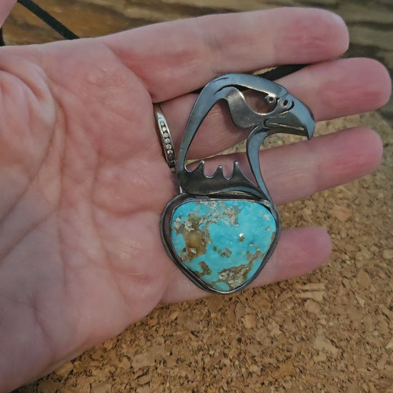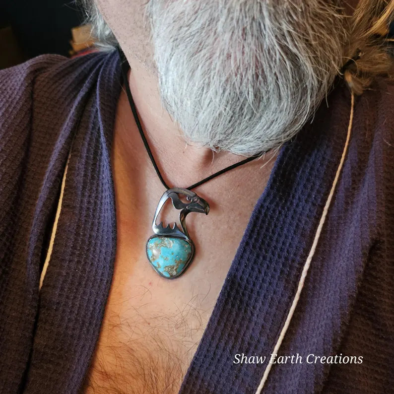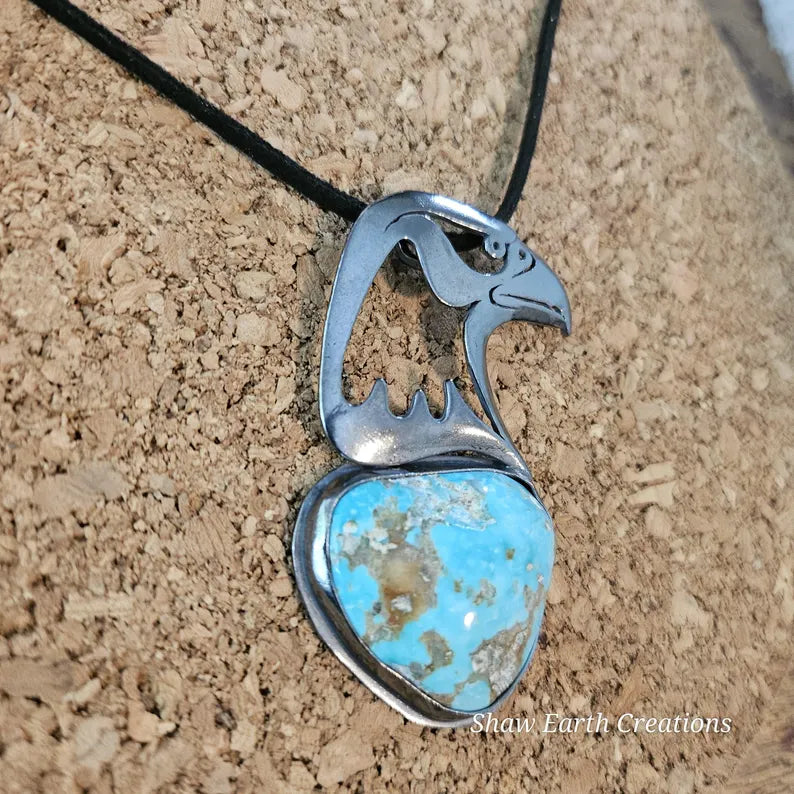 Handcut 43ct Kingman Turquoise War Eagle Sterling Silver Necklace