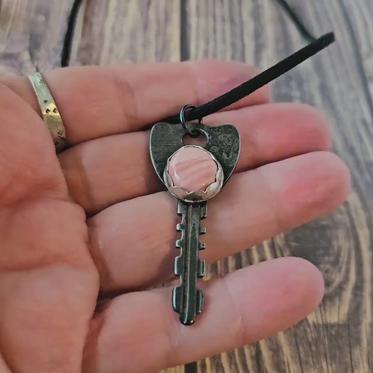 Handcut Peruvian Pink Opal Vintage Key Necklace