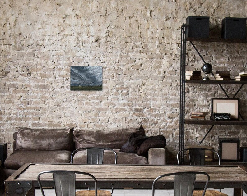 Experience the raw power of nature with Spring Hill Squall, an original hand-painted landscape that captures a dramatic storm sweeping across a sprawling farm. The squall, with its intense skies and swirling clouds, brings a sense of movement and energy to the peaceful rural landscape below. This painting showcases the beauty of nature’s contrasts – the calm fields and the intense drama of an approaching storm.
