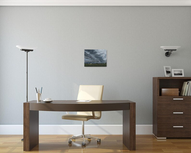 This one-of-a-kind artwork is perfect for anyone who loves farm landscapes, stormy skies, or nature’s dramatic beauty. The combination of rich colors and atmospheric effects makes this piece a stunning addition to any home or office decor.