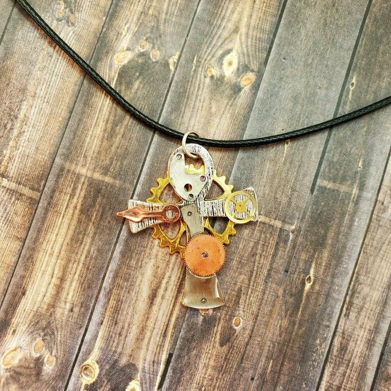 Whether you enjoy steampunk or want the power of the ankh, this necklace is for you. A combination of a silver ankh with steampunk gears makes an interesting addition to your necklace collection. You'll get a lot of questions about this one. Make up the answers as you go and have fun with it.